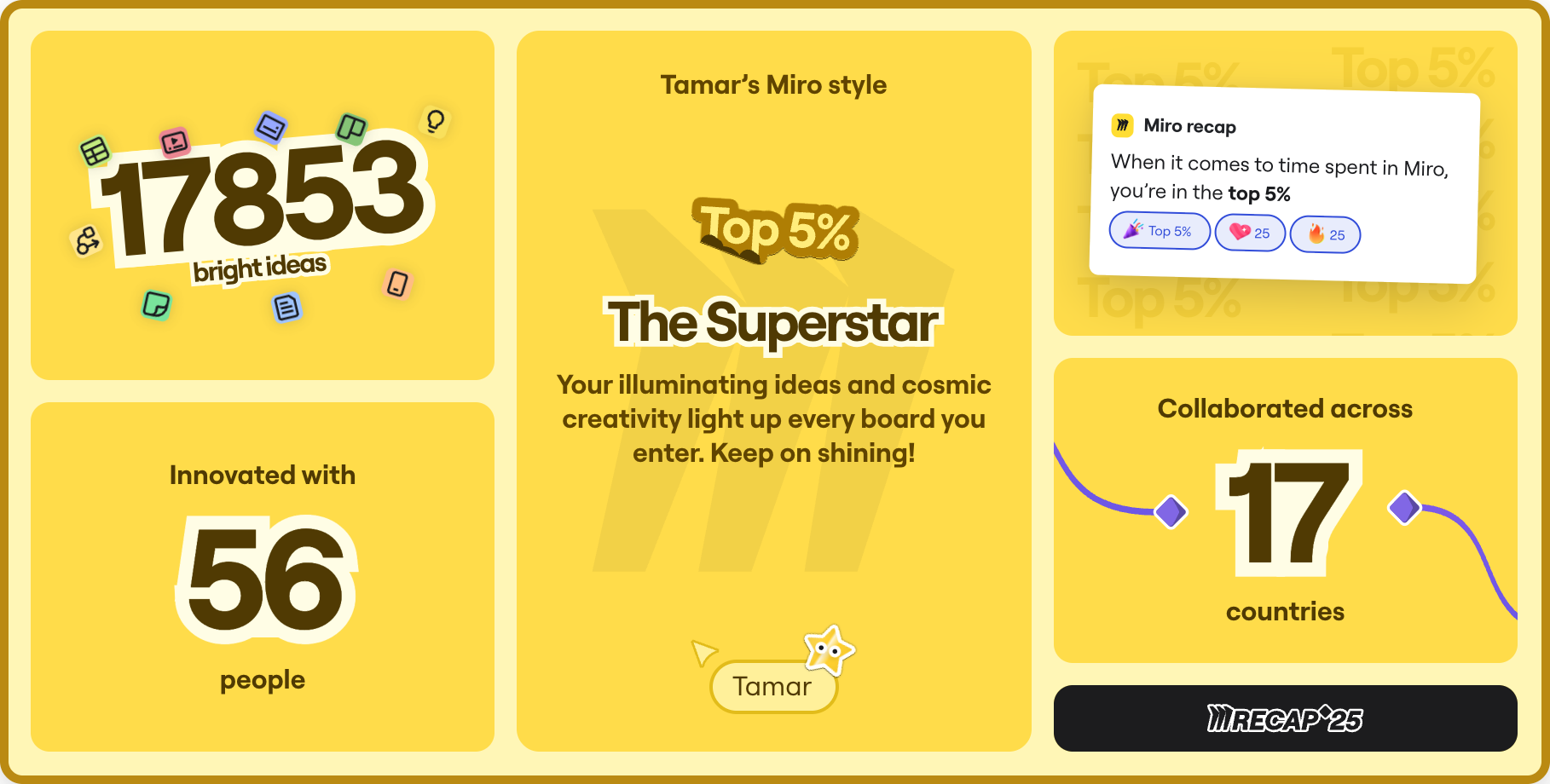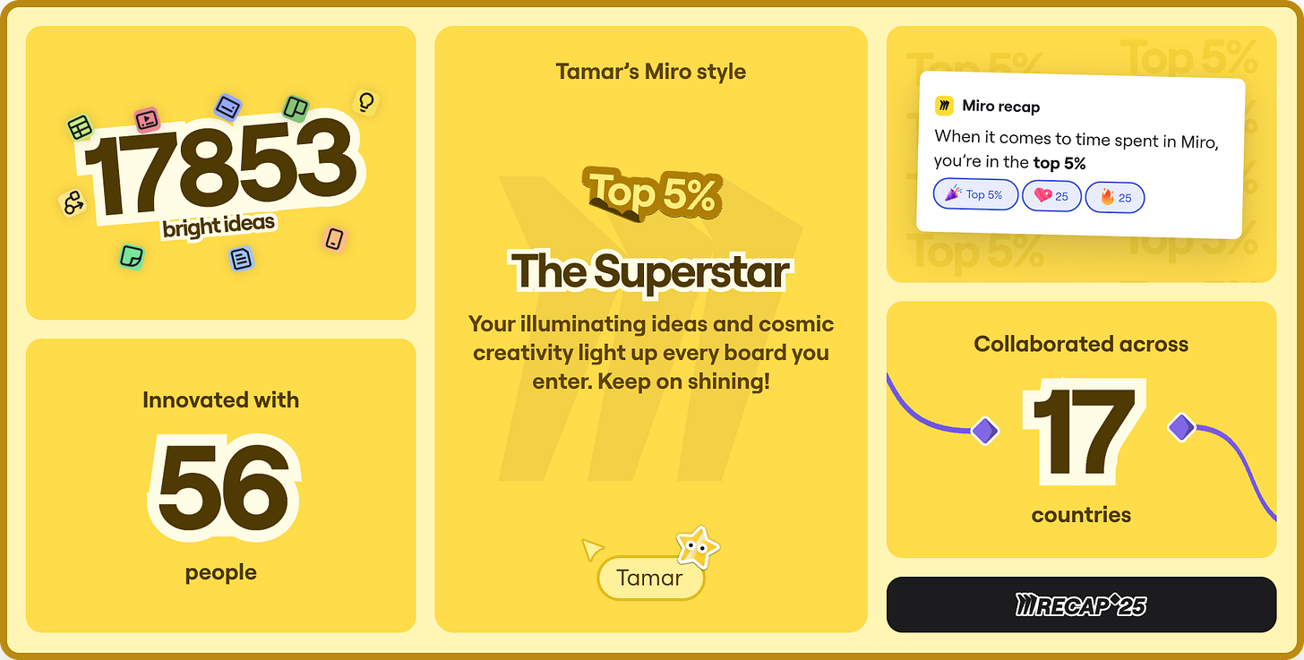 I learned that I’m in the Top 5% of all Miro users globally for time spent building, mapping, and ideating.